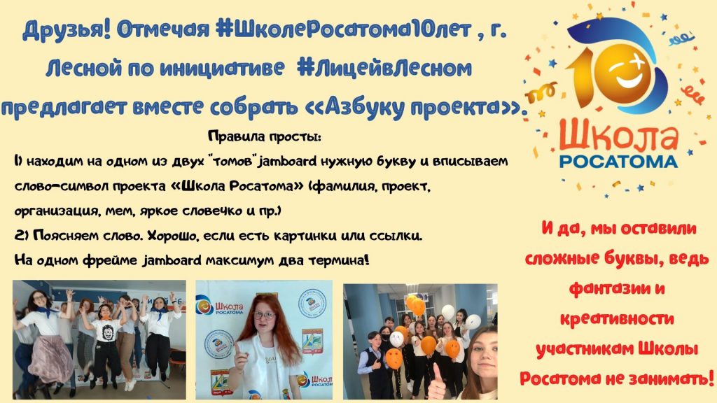 Друзья! Город #Лесной по инициативе сетевой школы #ЛицейвЛесном предлагает вместе собрать «АзбукуШколыРосатома» в рамках событийного марафона #ШколеРосатома10лет