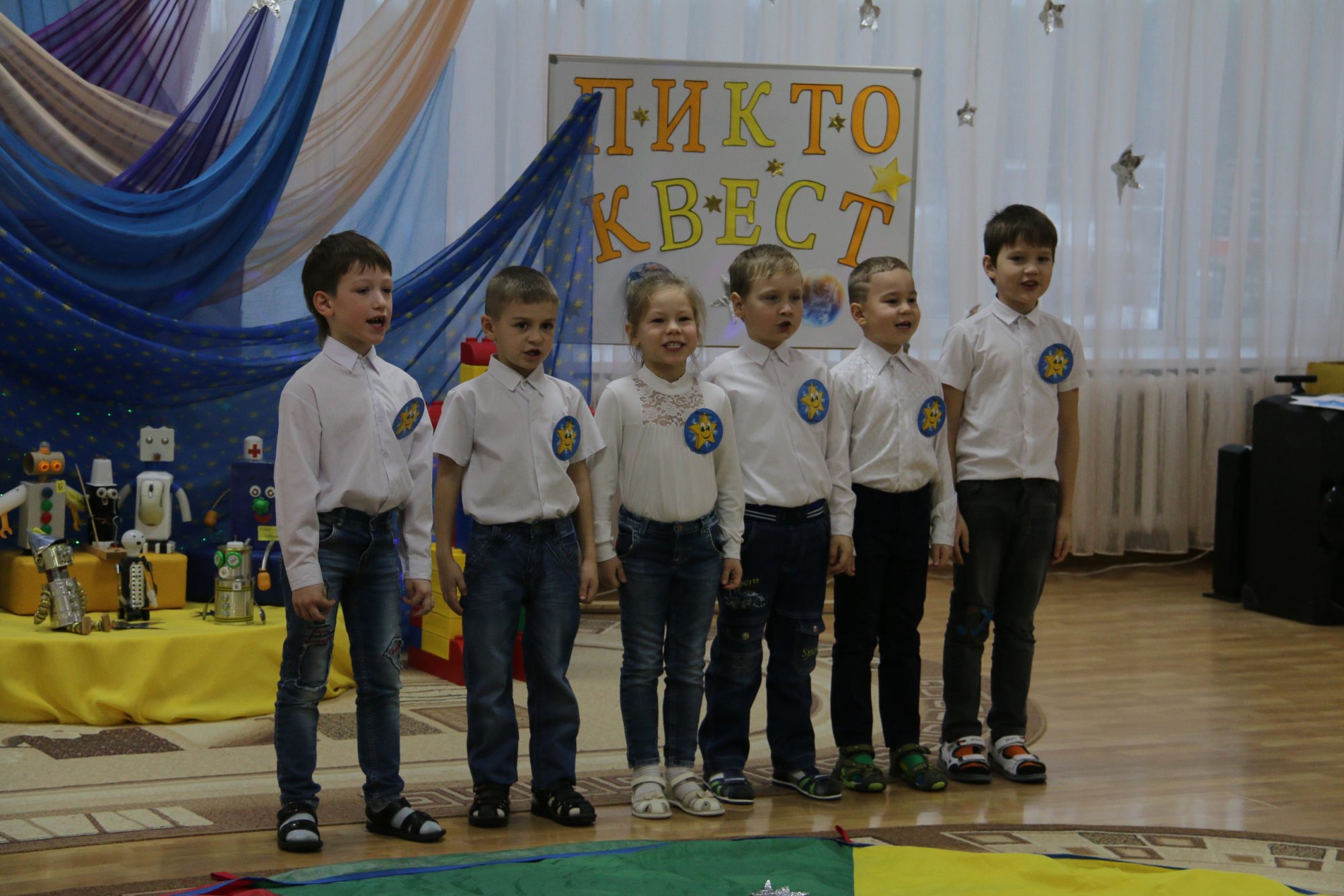 Ребята прошли пять интерактивных площадок, организованных на базе детского сада «Чебурашка». Каждая предстала в виде планеты Солнечной системы, где, выполняя определённые задания, включая программирование робота, ребятам необходимо было найти ключ к загадочному шифру. На выполнение каждого этапа «Пикто-квеста» отводилось не более семи минут. Проявив свои математические знания и умения, мальчики и девочки справились со всеми заданиями и уложились в указанный регламент.