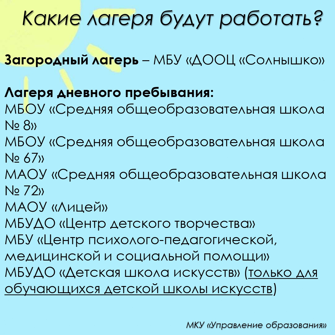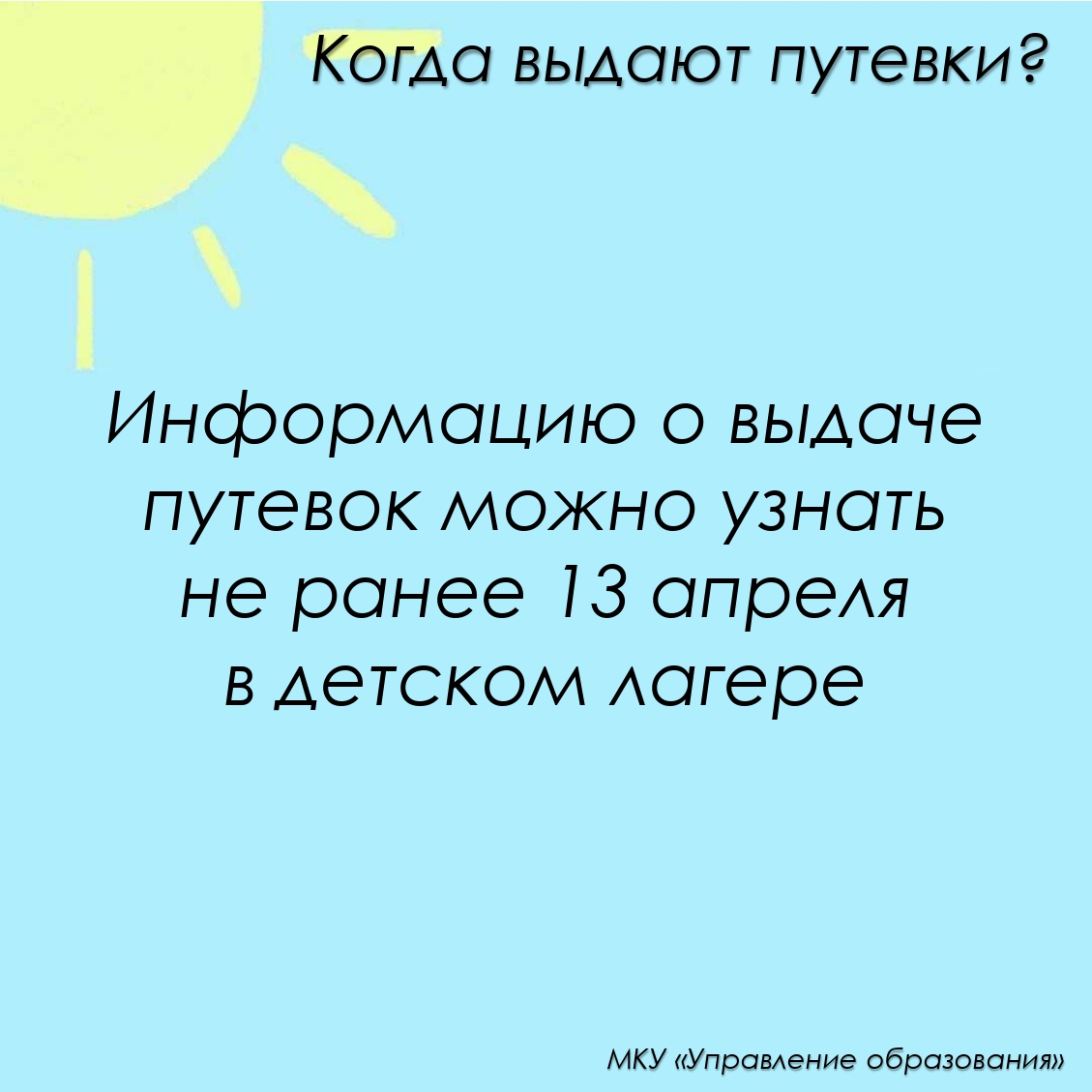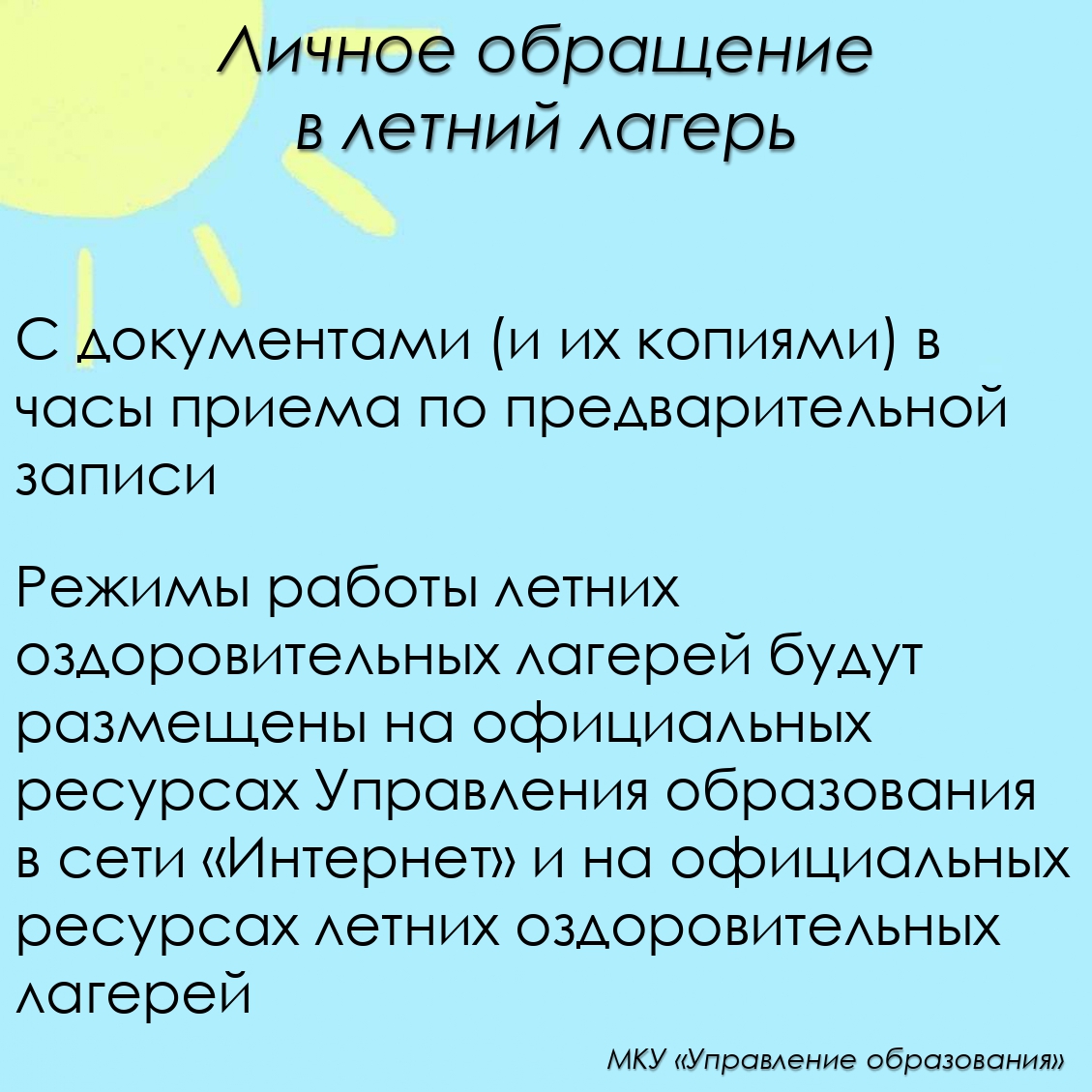 Управление образования подготовило информационные карточки по предстоящей летней оздоровительной кампании 2025 года.
