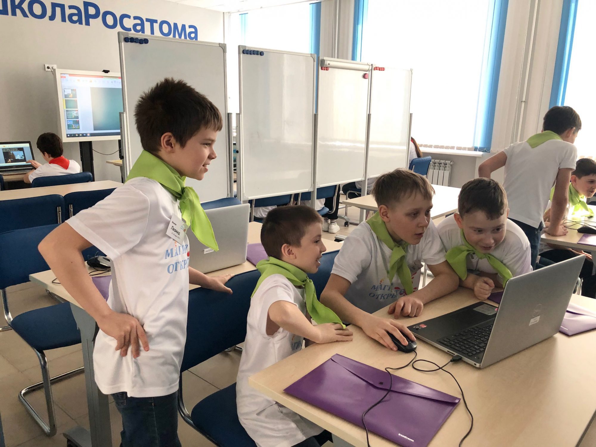 Ребята проводили опыты и эксперименты в химической лаборатории #Атомкласс и в мастерской «Магия цвета», конструировали и программировали роботов Lego Mindstorms EV3, знакомились с основами инфографики, мультипликации, осваивали работу на 3-D принтере, моделировали с помощью электронного конструктора «Знаток» и «ТИКО-Архимед». Каждый ребенок проявил свою фантазию, талант и поделился с друзьями новыми творческими идеями.