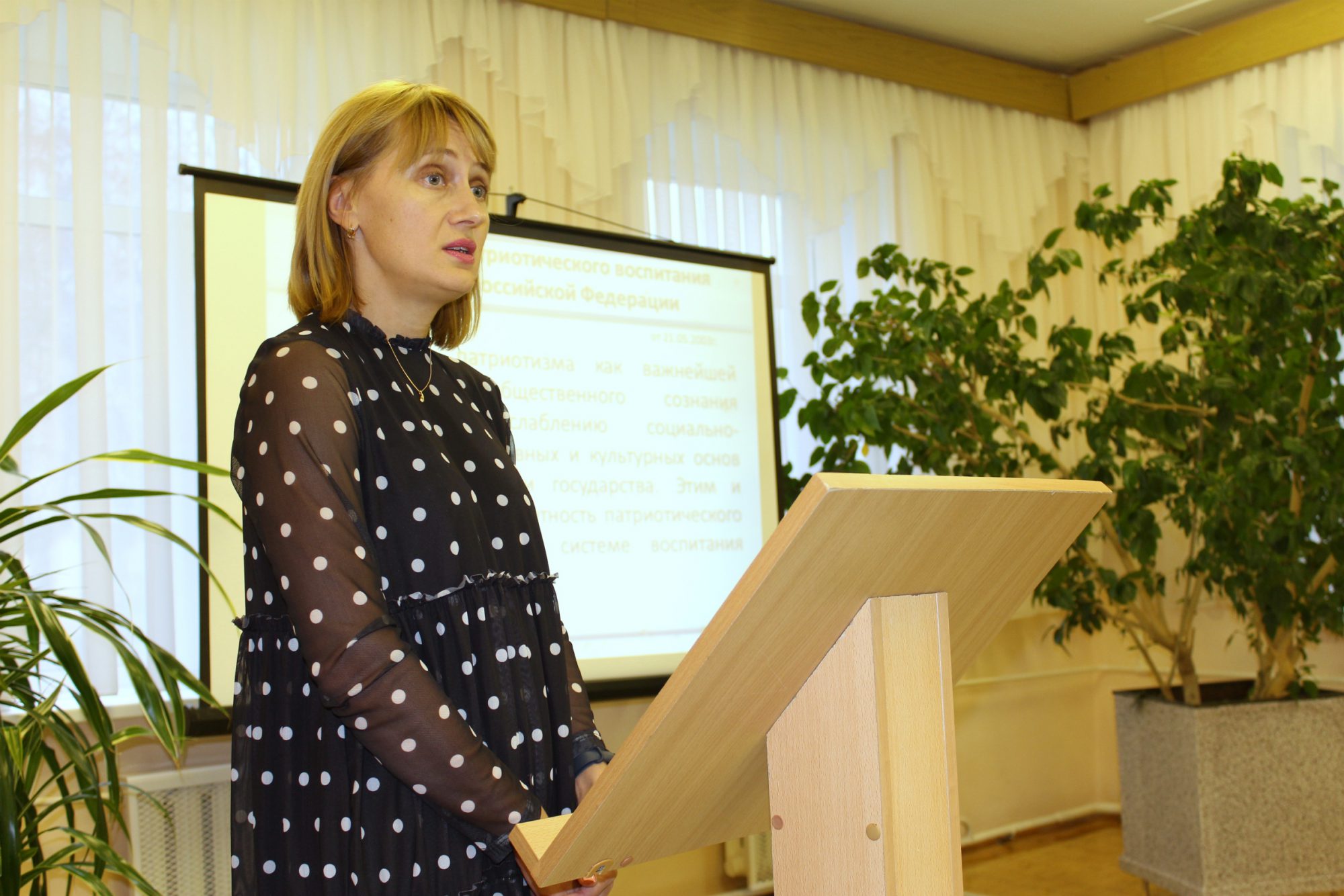 О важности объединения усилий в сфере сохранения военно-исторического наследия и патриотического воспитания в целом, нашей ответственности перед поколением победителей говорилось в выступлении заместителя главы администрации городского округа «Город Лесной» Е.А.Виноградовой. Событиям года 75-летия Победы в Великой Отечественной войне, адресованным детям и юношеству, нужно уделить самое пристальное внимание.