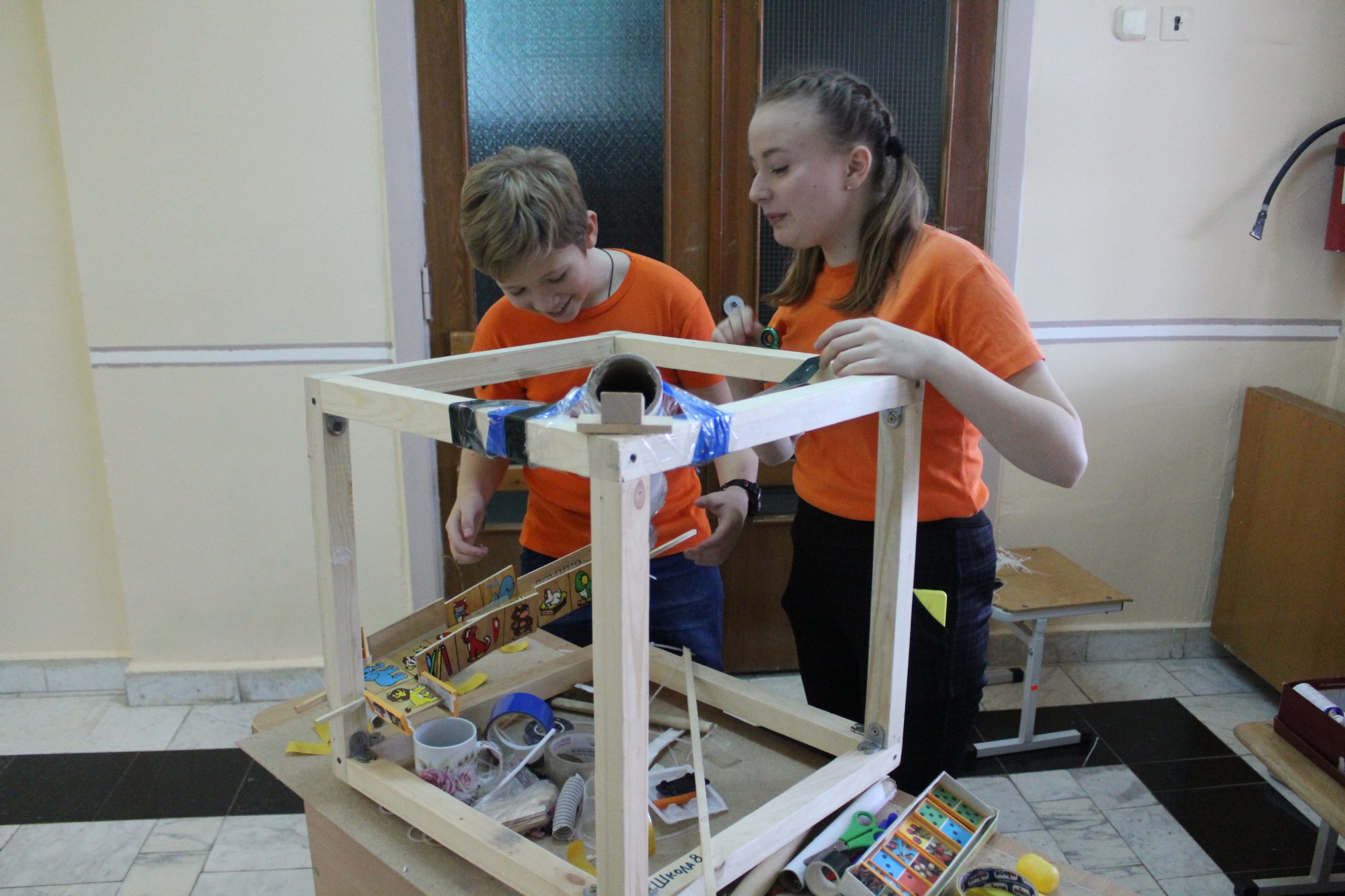 Каждая команда могла воспользоваться определенным набором инструментов и материалами из общего ресурсного запаса: пластиковые уголки и трубы, кабель-каналы, листовой гофрокартон и т.д.